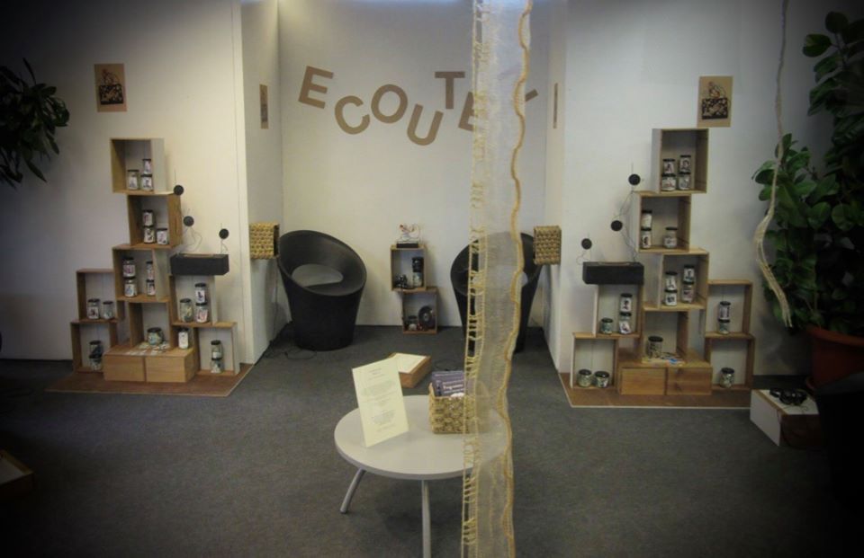 Nous concevons des dispositifs interactifs permettant l’écoute des témoignages ou des poèmes enregistrés. Ordinateur, application numérique, magnétophone à cassette, vieux combiné téléphonique, robe, boîte en carton, disque vinyl gravé pour l’occasion sont utilisés pour la mise en place des Poëtiks Machines.